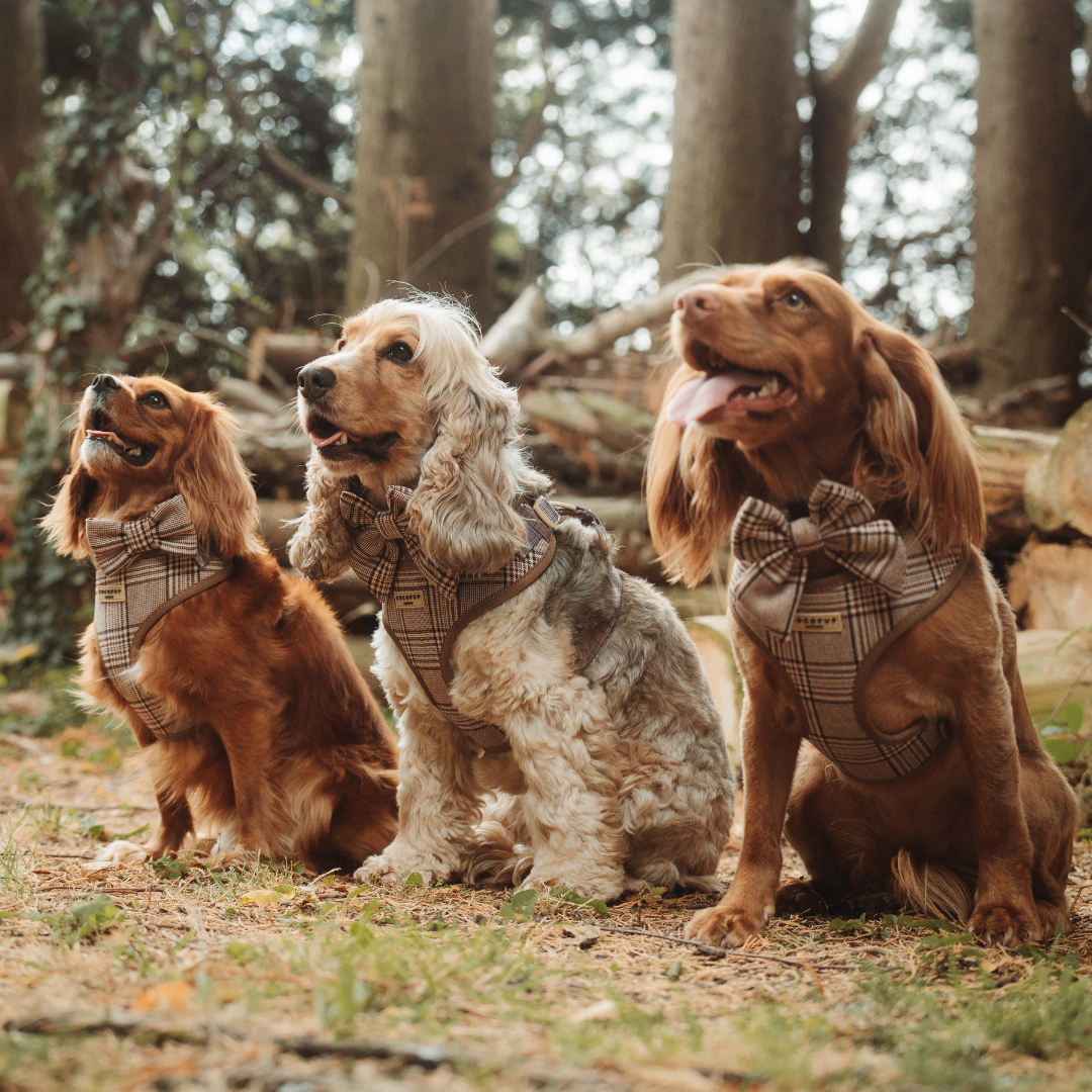 Material: Tweed with velcro fastening (to wrap around any collar or harness)