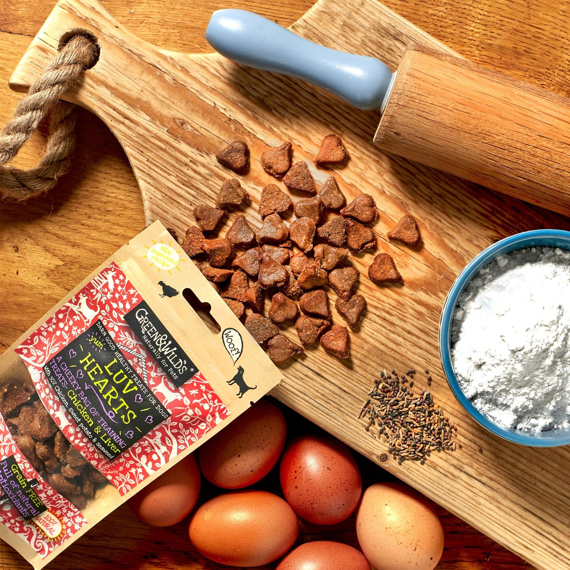 Baked in the rolling hills of England, our tasty little Love Heart Treats are the perfect way to show your dog some love.