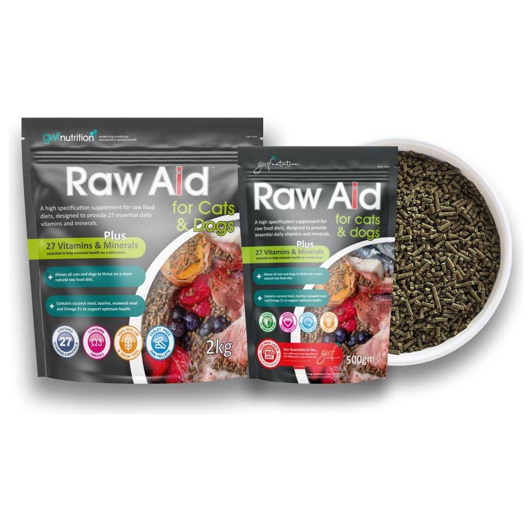 - Raw Aid can be fed to any cat or dog on a raw food diet to provide essential daily vitamins and minerals. Raw Aid is suitable for pregnant and lactating females as well as puppies and kittens from weaning